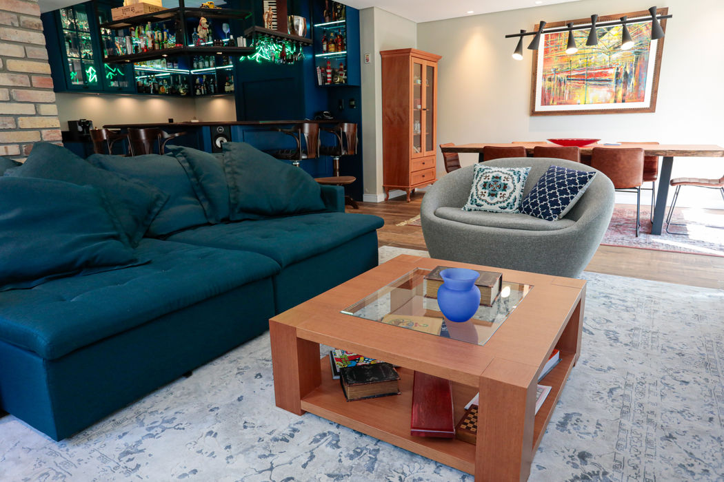 Aréa gourmet com bar, cliente queria receber a família e amigos em um espaço organizado e moderno